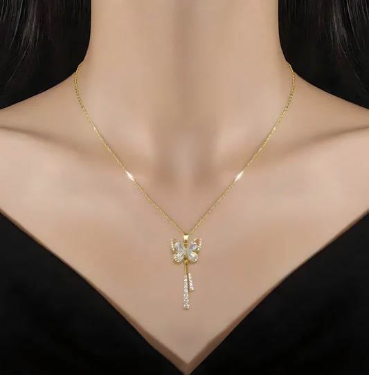 Butterfly Tassel Full Diamond Necklace